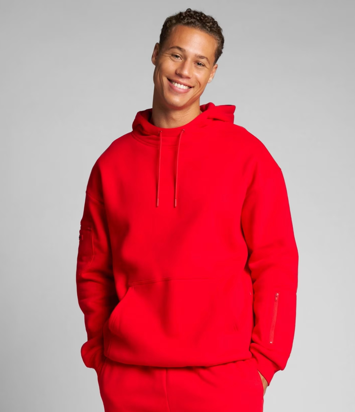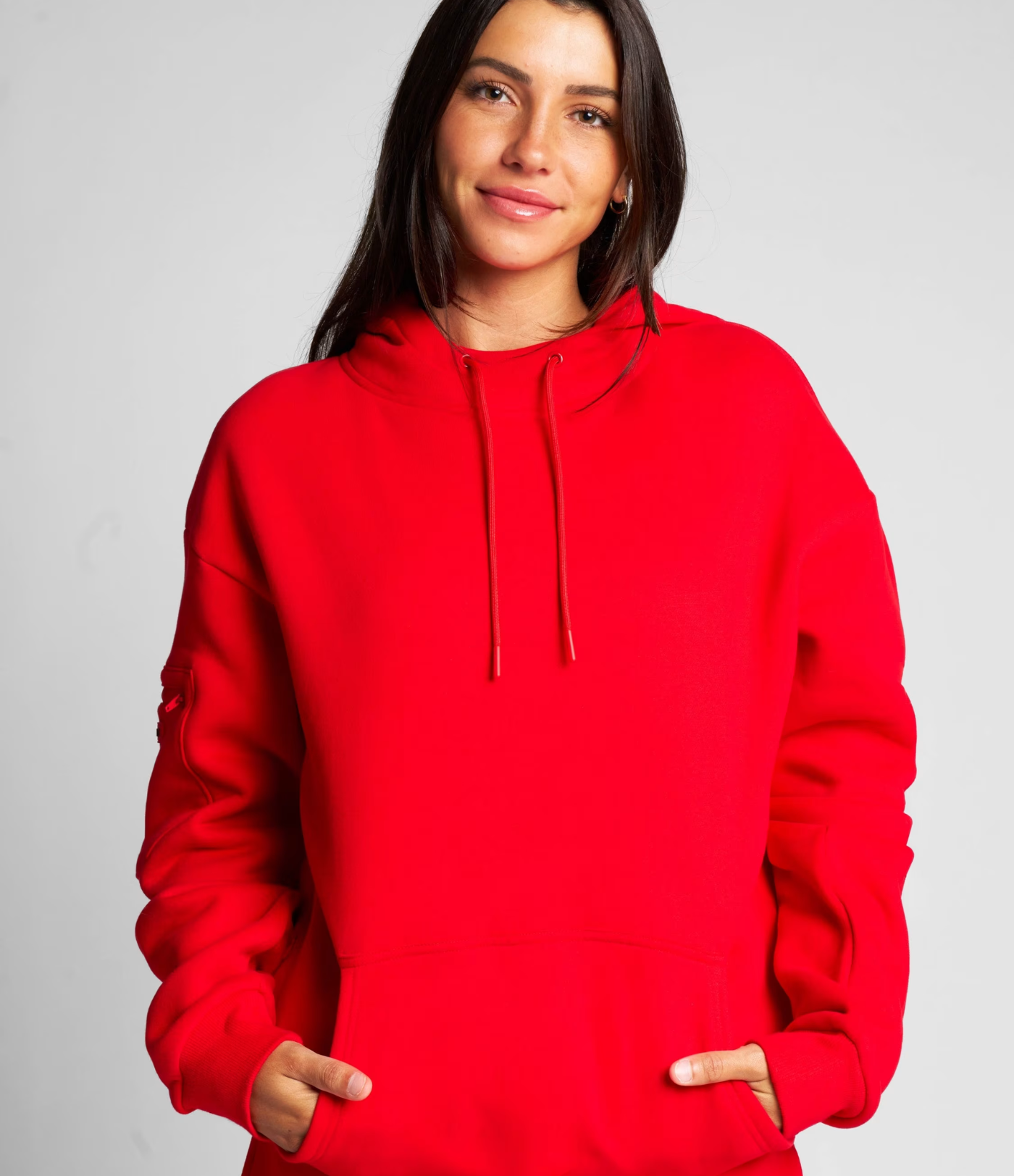 Ja! Glidelåslommene på begge ermene er laget for å oppbevare små nødvendigheter som AirPods, kort, nøkler eller leppepomade. De holder tingene dine trygge uten å legge til ekstra volum.