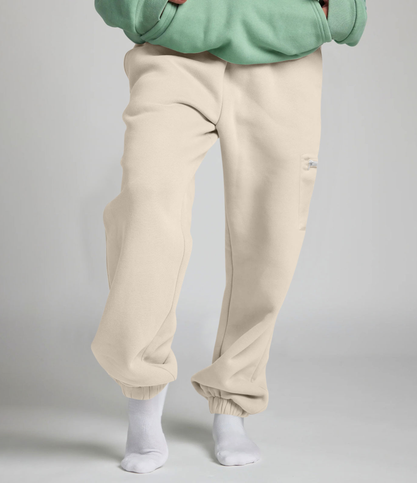 De er laget av en supermyk Combed Cotton Blend Heavyweight Fleece (51 % bomull, 49 % polyester). Stoffet gir varme, pusteevne og høy slitestyrke, samtidig som det føles utrolig mykt mot huden.