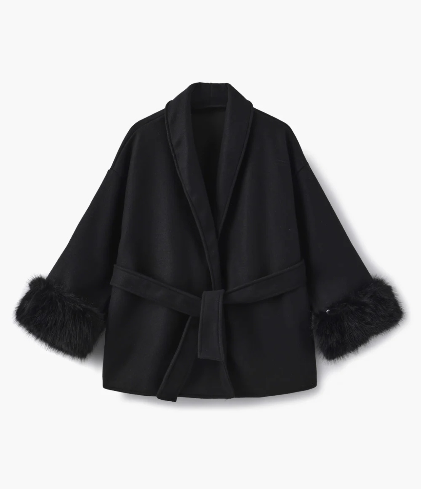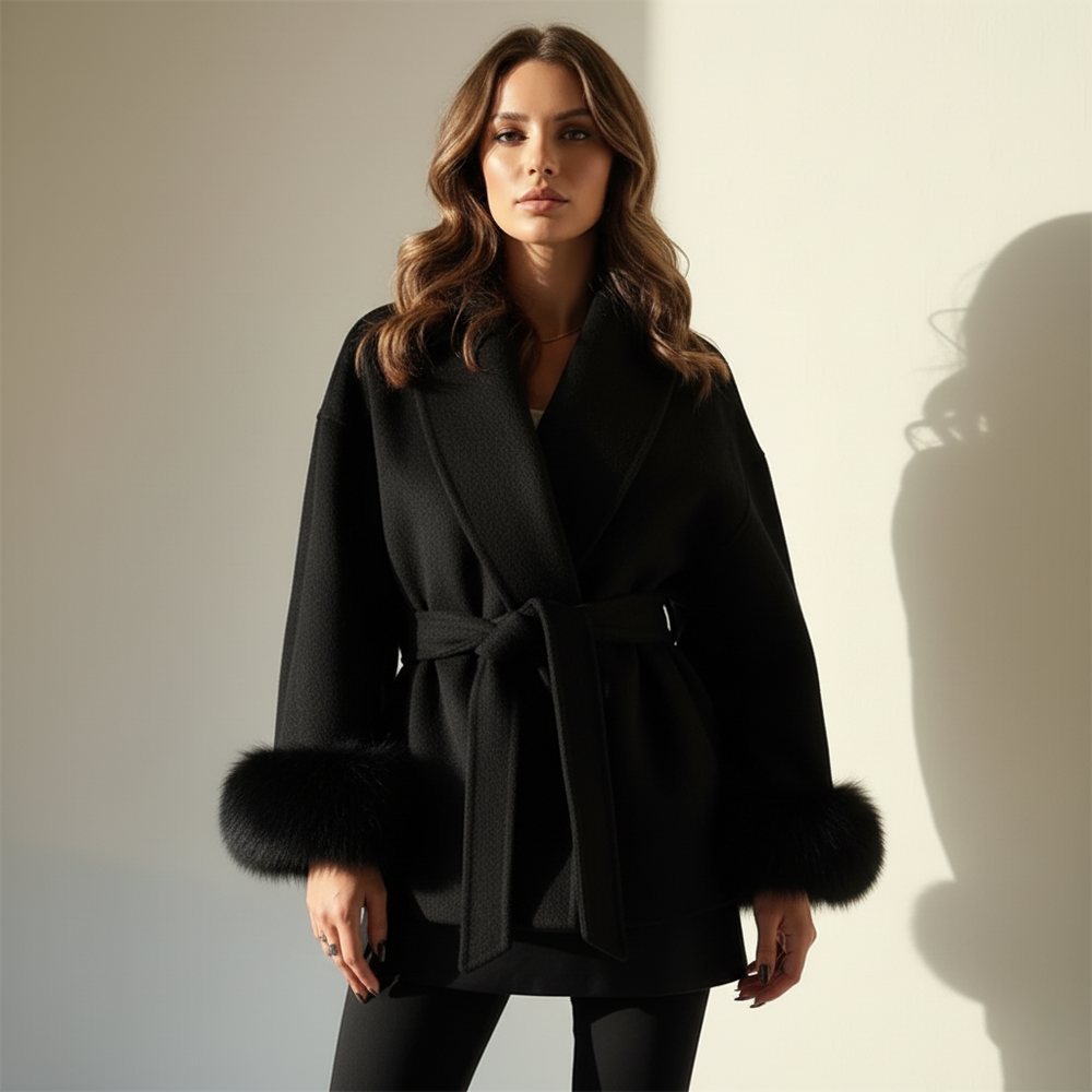 Gå ut med stil uten å kompromittere på komforten. Denne myke ullkåpen gir luksuriøs varme med mykt, behagelig stoff og elegante pelsdetaljer. Den høykvalitets blandingen av ull og polyester sikrer slitestyrke samtidig som den holder deg varm på kalde høst- og vinterdager. Perfekt både til hverdagsbruk og mer stilfulle anledninger, og tilfører et sofistikert preg til ethvert antrekk.