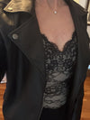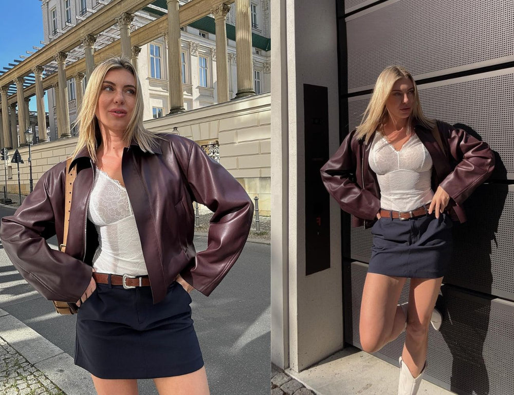 En kombinasjon av blondebody og skinnskjørt er både elegant og dristig. Enten du velger et mini- eller midiskjørt, fremhever det strukturerte skinnet de intrikate detaljene i blonden, og tilfører en dristig, stilfull kontrast. Dette er et antrekk som forener eleganse med litt edge, ideelt for kveldsutflukter eller eksklusive arrangementer.