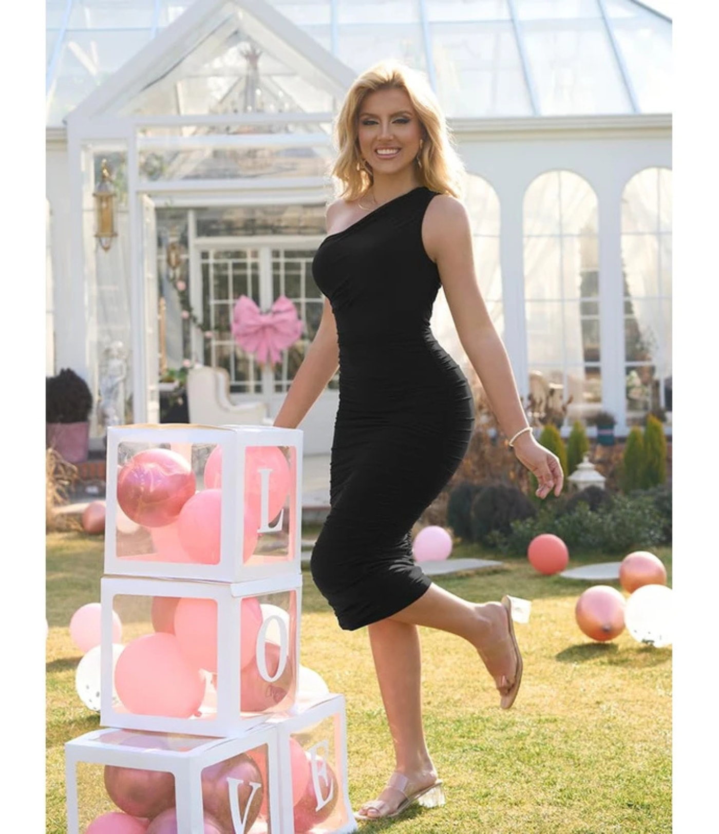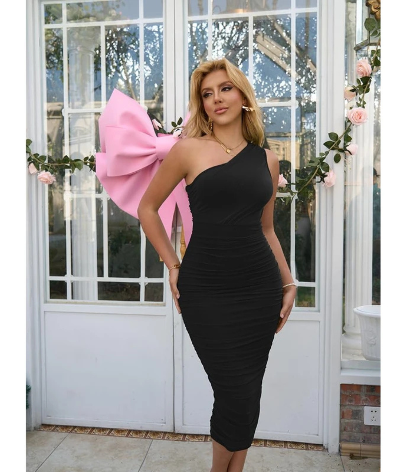 Løft garderoben din med vår sexy énskulders midikjole – den ultimate kombinasjonen av eleganse og tiltrekningskraft. Med en dristig énskulders silhuett og flatterende rynkedetaljer fremhever denne kjolen figuren din samtidig som den markerer dine naturlige former.