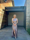 Sideslissen er elegant høy nok til å tilføre bevegelse og tiltrekning, samtidig som den forblir smakfull – perfekt for formelle anledninger.